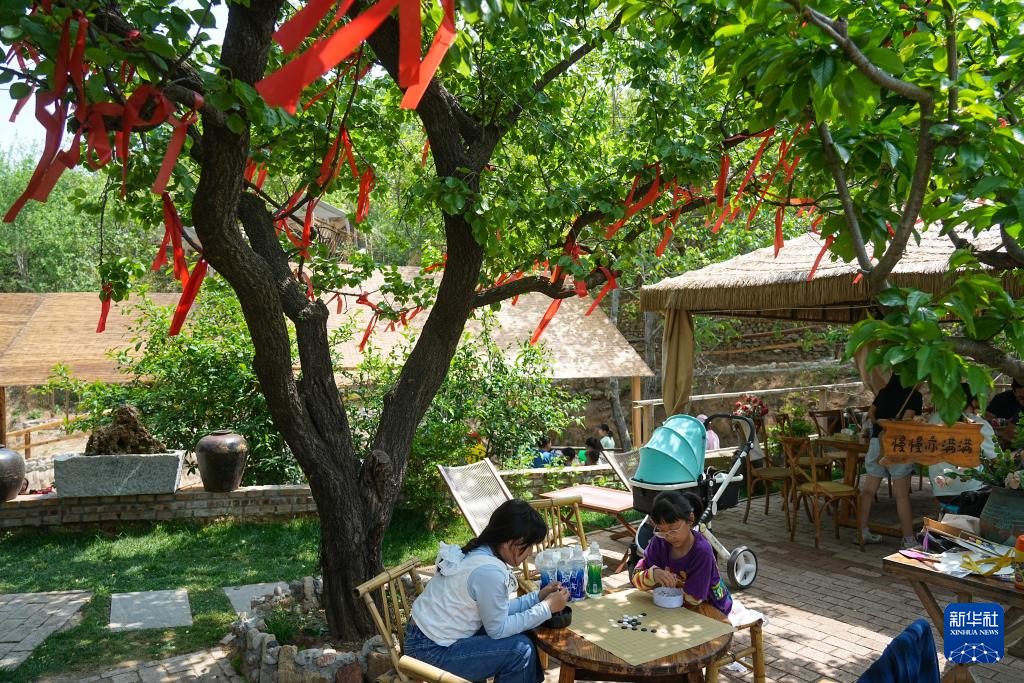 4月20日,在张夏街道岳庄村,游客在一处休闲庭院内休闲娱乐。新华社记者 朱峥 摄