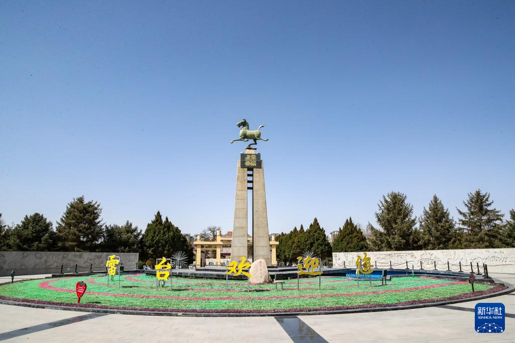 这是4月24日在武威市凉州区拍摄的雷台汉墓景区铜奔马雕塑。新华社记者郎兵兵摄
