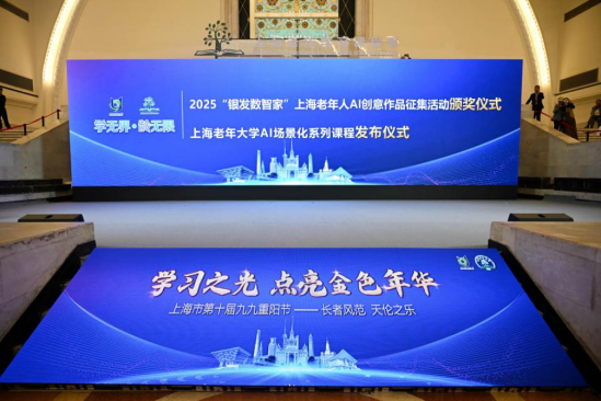 10月20日,2025“银发数智家”上海老年人AI创意作品征集活动颁奖仪式暨上海老年大学AI场景化系列课程发布仪式在上海展览中心隆重举行。中国老年大学协会会长刁海峰,中国老年大学协会常务理事、秘书长王少忠,上海开放大学党委书记闵辉,上海开放大学副校长、上海老年大学校长王松华等领导出席了仪式,全国近300位老年教育界代表与社会各界观众共同见证了这场聚焦老年教育数字化转型的重磅活动。作为国内首个老年学习课程展的核心亮点活动之一,其生动诠释了展会“学无界,龄无限”的核心主题。